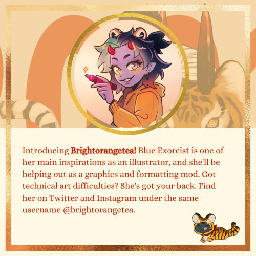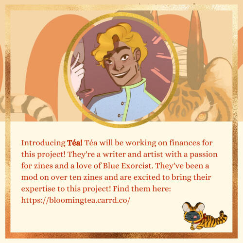 Introducing Artemis! Artemis will be working as an artist for this project. They grew up watching anime as a young adolescent and among one of the first was Blue Exorcist which they will always have a love for. This is their very first zine project and they hope to give it their all.